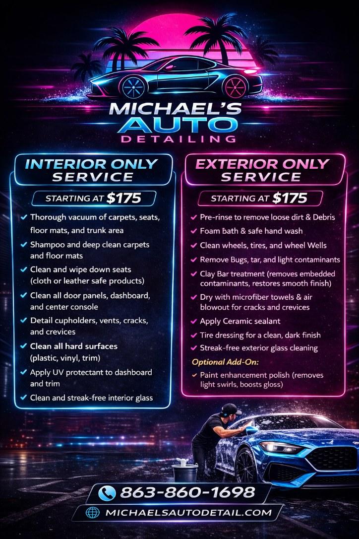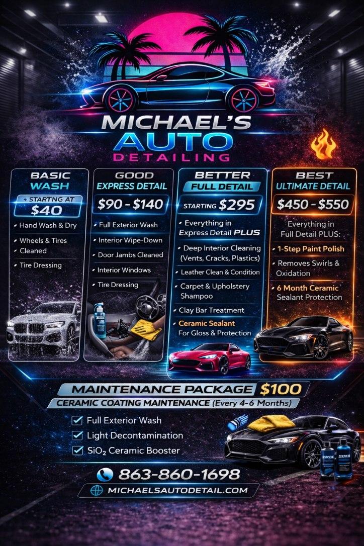 Michael's Auto Detailing is the only place I take my 3 cars for detailing. I have tried many other places in Polk county and Michael's by far is the best!!!!!!! See more See less